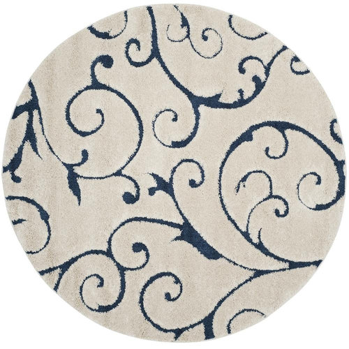 Safavieh Florida Shag Scrollwork Cream/ Blue Area Rug (5′ Round)