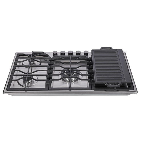 Edendirect 34 in. 5-Burners Recessed Gas Cooktop in Stainless Steel with 5-Power Burners and Double Sides Griddle