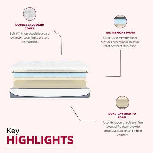 Esofastore Ultra Plush 13 in. Gel Memory Foam Mattress in a Box: Queen Size Luxurious Double Fabric Bed Mattress, White/Gray