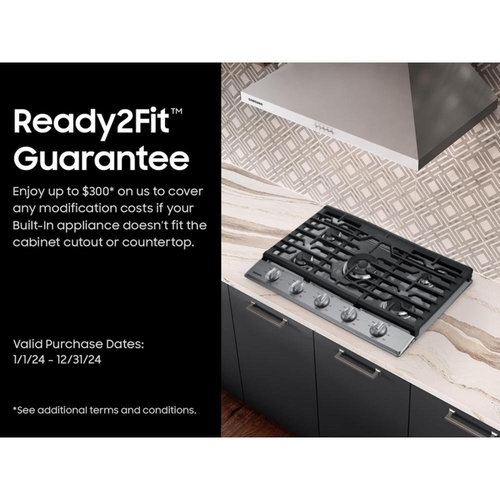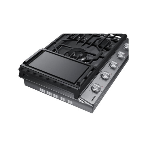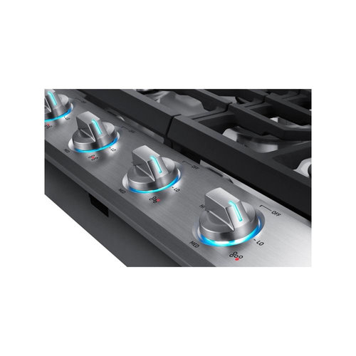 Samsung 30″ smart gas cooktop with illuminated knobs in stainless steel