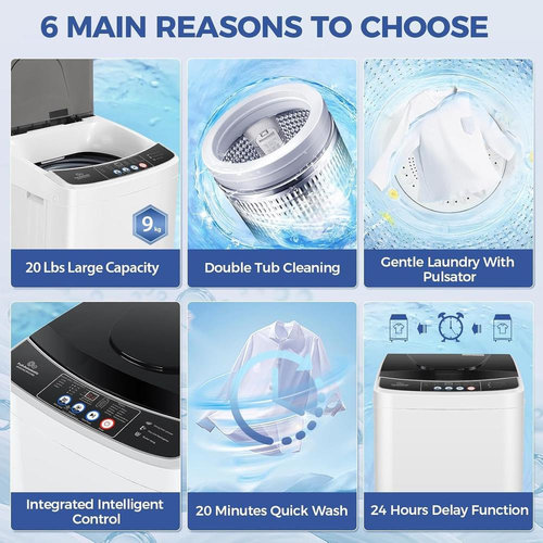 thinkstar 20Lbs Portable Washing Machine Portable Washer, 2.8 Cu.ft Washer and Dryer Combo with Drain Pump, 10 Programs 8 Water L